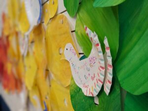 Projektwandbild der Klasse 5c 14. April 2026 - Am 20. Februar 2026 gestaltete die Klasse 5c im Rahmen des Projekttages „Auseinandersetzung statt Ausgrenzung“ gemeinsam ein Wandbild. Die Schülerinnen und Schüler arbeiteten daran, aus vielen einzelnen Elementen ein großes Ganzes entstehen zu lassen. Dieses KunstwerkRead More...
