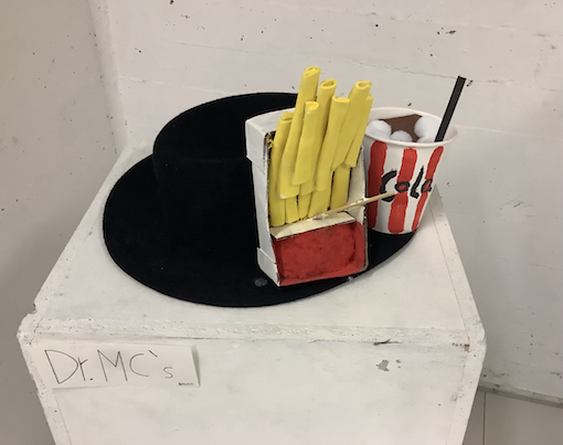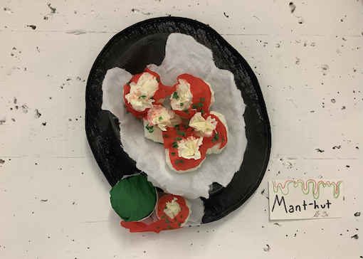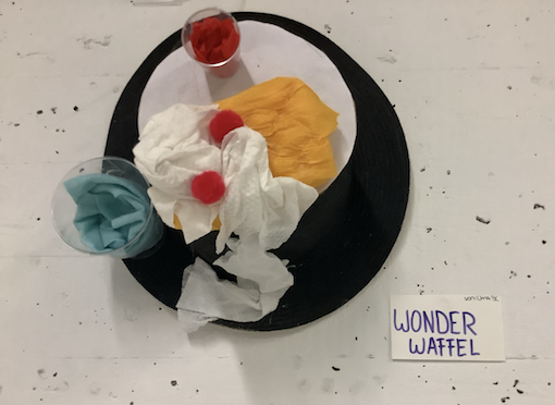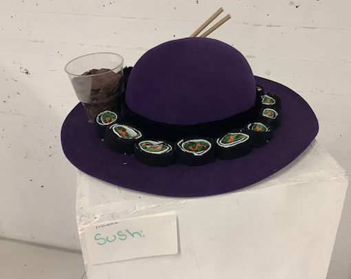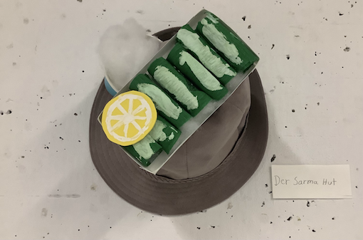 Beim Entwurf eines eigenen Hutes haben wir uns von unserem Lieblingsessen quer durch alle Kulturen inspirieren lassen. Ausgehend von der Geschichte des Hutes über Redewendungen rund um den „Hut“ haben wir verschiedene Kopfbedeckungen untersucht und anhand von Skizzen eigene Hutmodelle entworfen. Die ausgestellten Modelle heißen z.B. „Dinnertime“, „Sarma- Hut“, „Wonderwaffel“ oder Dr. Mc`s“.