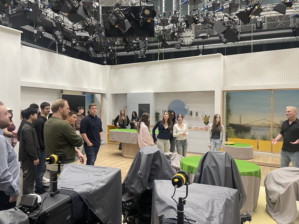 Als die Klasse 10c die Präsentationen abgeschlossen haben, fuhren sie mit einem Begleiter der Sparda Bank zum WDR-Funkhaus Düsseldorf. Dort sah sich die Klasse zuerst einen Regie-Raum an und anschließend ein Aufnahmestudio. Es wurde erklärt, dass dieses Studio für unterschiedliche Sendungen und Interviews mit Gästen genutzt wird. Als nächstes ging es zum ZDF und in das Studio für die Sendung „aktuelle Stunde“. Zuletzt ging es in den Landtag NRW. Dort angekommen gab es nach der Sicherheitsüberprüfung ein leckeres Mittagessen: Nudeln mit Tomatensoße. Danach traf die 10c einen Abgeordneten des Landtags. Nach einer kurzen Führung durch das Gebäude, beantwortete er auch noch die vorbereiteten Fragen der Klasse zu politischen Themen.
