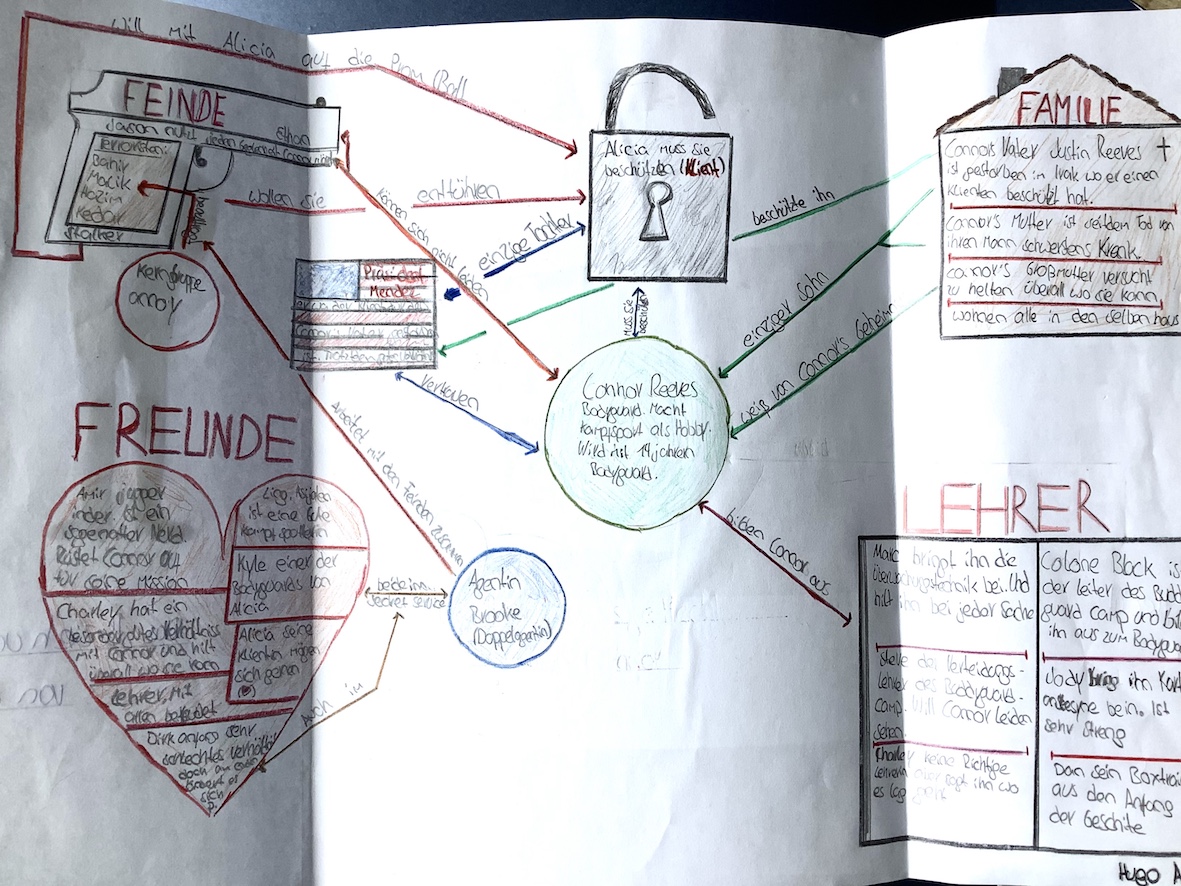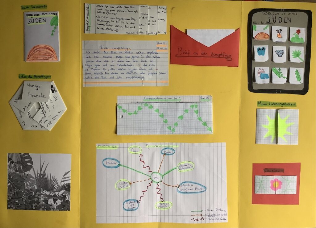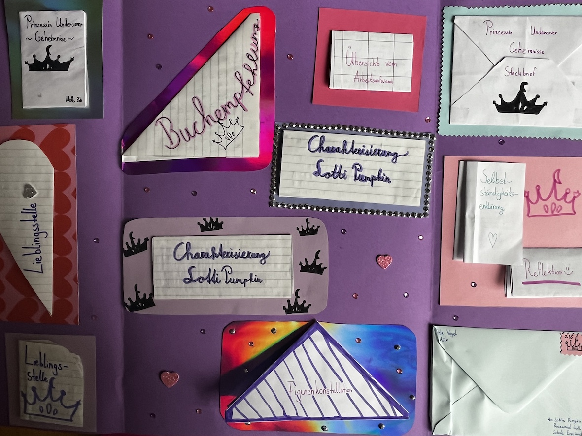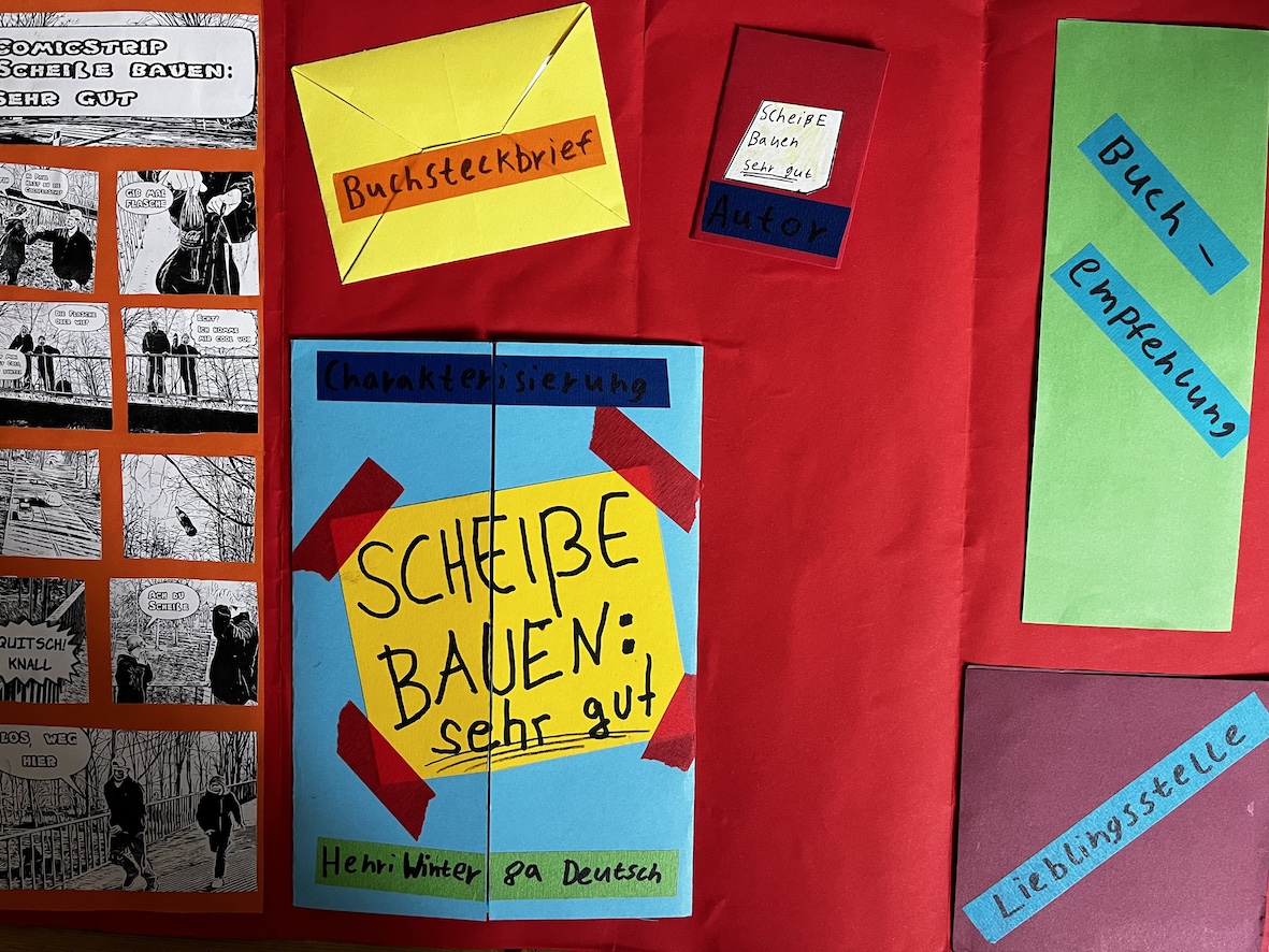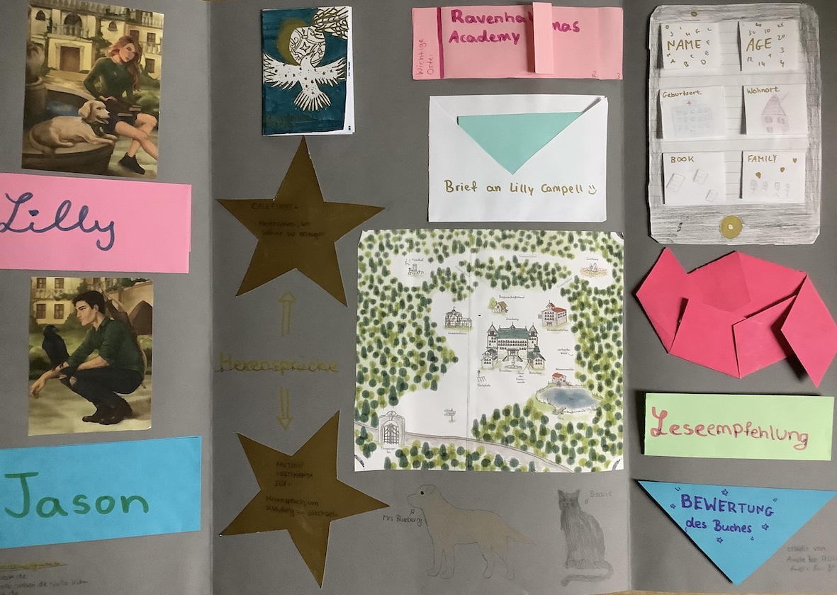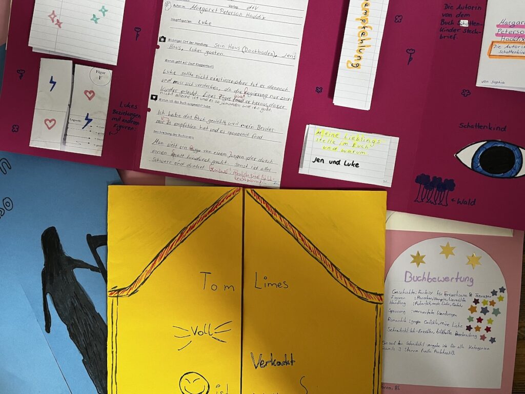 Bis zu den Osterferien hatten die Schülerinnen und Schüler des 8. Jahrgangs im Deutschunterricht die Möglichkeit, ihre eigene Lektüre kreativ zu präsentieren und ihre persönliche Lieblingsfigur vorzustellen. Durch vielseitige Faltformate für das Lapbook, intensive Internetrecherche, Bilder und eigene Zeichnungen sind individuelle Buchvorstellungen entstanden.