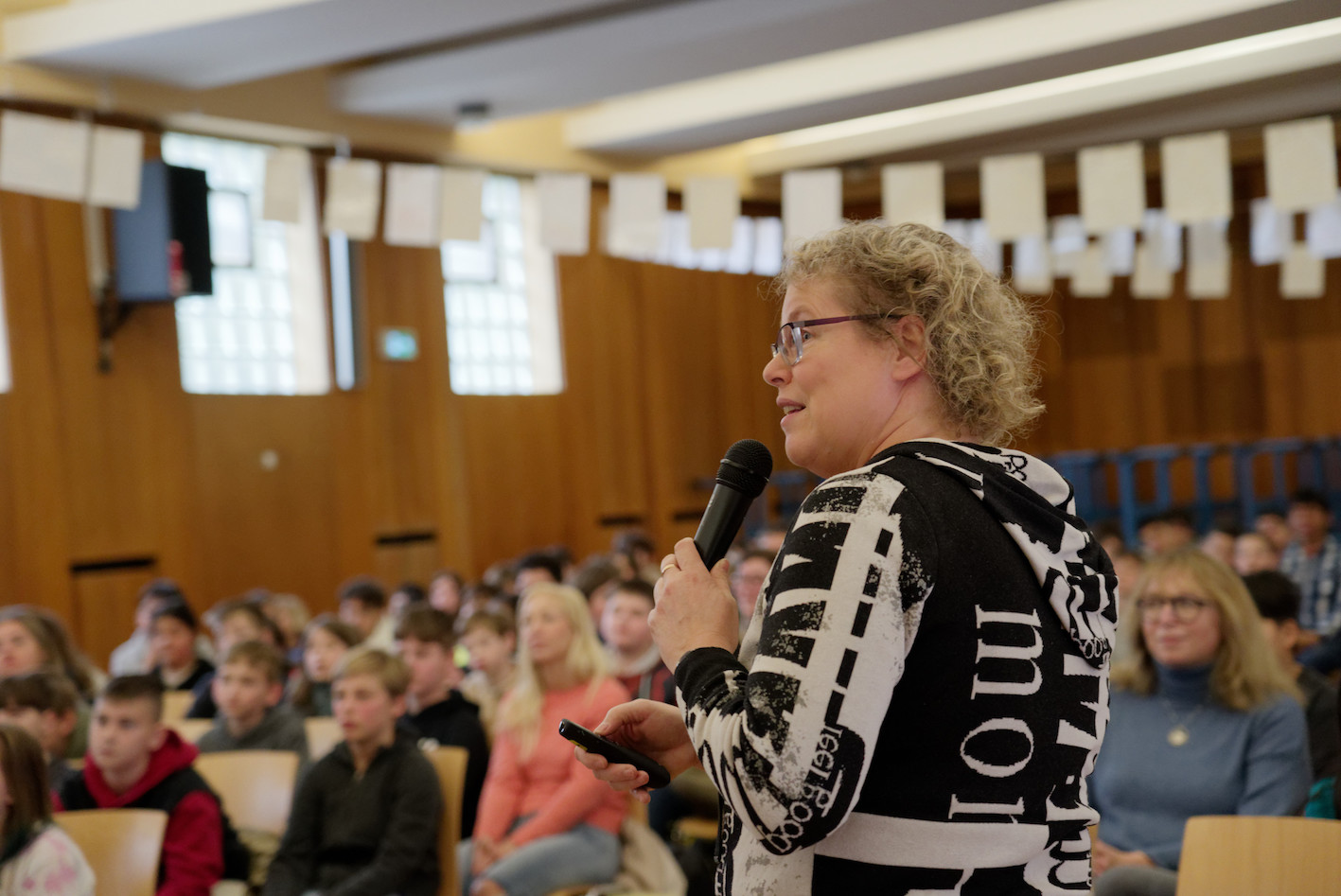 Nach einer charmanten Vorstellungsrunde und einem kurzen Parforceritt durch ihr literarisches Oeuvre, welches übrigens beinahe 70 Werke umfasst und dabei die Hälfte jenes Werkes die Jugendliteratur ausmacht, waren die Schülerinnen und Schüler besonders auf eine Kostprobe ihrer Jugendgeschichten gespannt.
