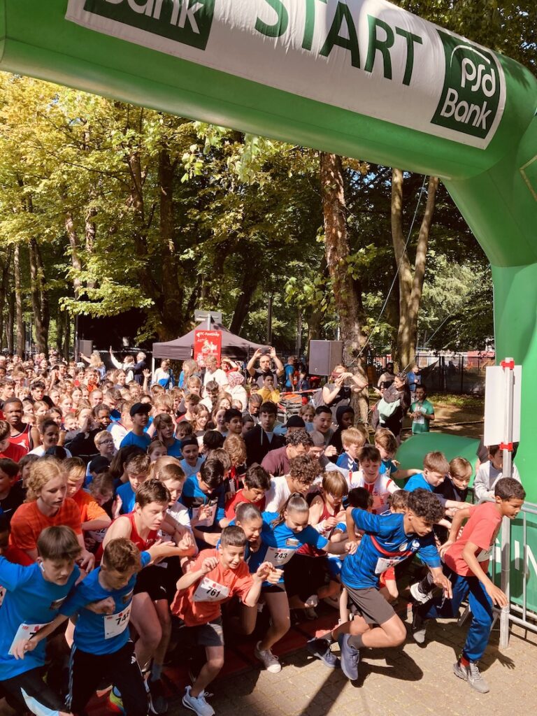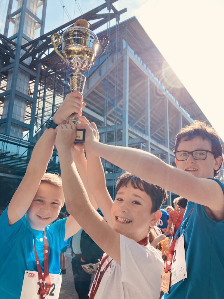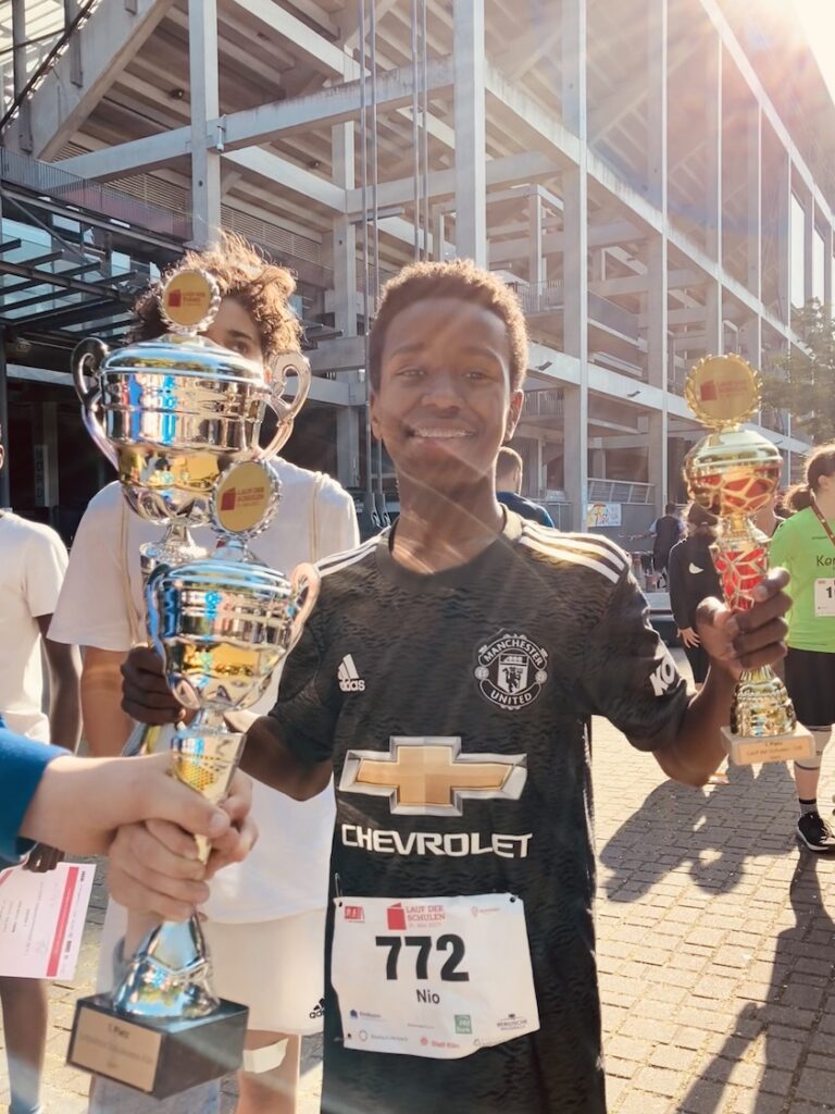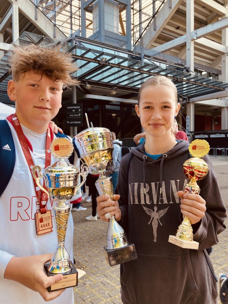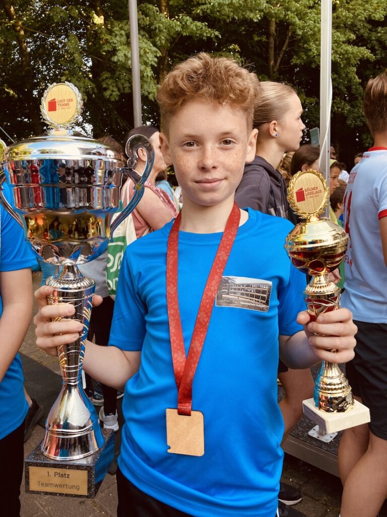 Die Gesamtschule Lindenthal erzielte beim Lauf der Schulen (Leselauf) am 25. Mai 2023 ein sehr gutes Ergebnis und konnte bei der Siegerehrung gleich sechs Pokale triumphierend am RheinEnergieSTADION in die Höhe halten. Den größten Pokal gab es für die Schule mit den meisten Teilnehmern (109) und die Sportklasse 7b. Sie wurde über die 4 km als schnellste Klasse Kölns ausgezeichnet (beste Läufer/innen: Ömer, Nio, Giuliano, Finn und Elena). Nio Schlegtendal wurde über die 4 km auch insgesamt schnellster Schüler Kölns, sowie über die 2 km Johanna Bach und Dawid Tomas (beide 6b). Herzlichen Glückwunsch an alle für diesen sehr erfolgreichen Sport-Wettbewerb.