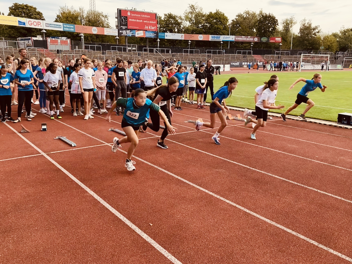 Am 20. September nahmen alle drei Sport-Klassen (80 Schüler/innen) an der Talentiade im Südstadion teil und zeigten beim Weitsprung, Hochsprung, Weitwurf, Sprint und Mittelstreckenlauf gute Leistungen. Einen vierten Platz von 150 Schüler/innen erreichten im Hochsprung Leonard Bartz, Jannik Hansen, Lasse Klimek und Jan Hillnhütter und im 50m Sprint Lisanne Hornung. Beim 50 Meter Sprint der Jungen erreichte Jonas Grundhöfer sogar die Bronze-Medaille. Ebenfalls eine Bronze-Medaille ging an Jan Hillnhütter im Vier-Kampf (Gesamtwertung der Disziplinen). Einen ganz besonderen Erfolg feierte Johanna Bach mit der Goldmedaille im Weitwurf. Mit diesen guten Leistungen belegte unsere Schule von 16 Schulen Platz 4 in der Gesamtwertung. Herzlichen Glückwunsch an alle Sportler/innen für diesen Erfolg.