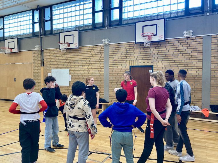 Am 1. Februar 2024 gab es für die Rugby-AG der Gesamtschule Lindenthal besondere Gästinnen aus dem Rugbysport: Mit RSV-Kapitänin Luise Lauter und Spielerin Anika Horst kamen die Siebtklässler:innen in den Genuss zwei Nationalspielerinnen hautnah kennenzulernen und von Ihnen gecoacht zu werden. Die Stunde wurde mit einem Tagrugby-Spiel beendet.