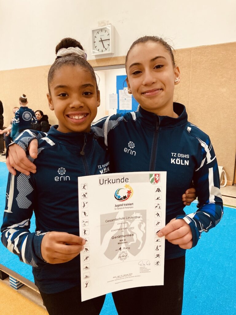 Nachdem die Turn-Mädchen-Mannschaft 2022/23 die Titel Stadtmeister, Bezirksmeister und Landesmeister NRW gewann, zeigten sie auch im Bundesfinale in Berlin vom 02. bis 06. Mai ihr herausragendes Können. Bis kurz vor Abfahrtstermin war aufgrund einer Verletzung nicht klar, ob alle starten können. Doch dann fuhr die komplette Riege in Begleitung von Trainer und Sportkoordinator in die Hauptstadt und lieferte nach einigen Trainingstagen eine sensationelle Leistung im Wettkampf. Als einzige Gesamtschule und seit langem auch als einzige Kölner Schule konnte so der höchste sportliche Titel im Schulbereich gewonnen werden. Die gesamte Schulgemeinde gratuliert herzlich!