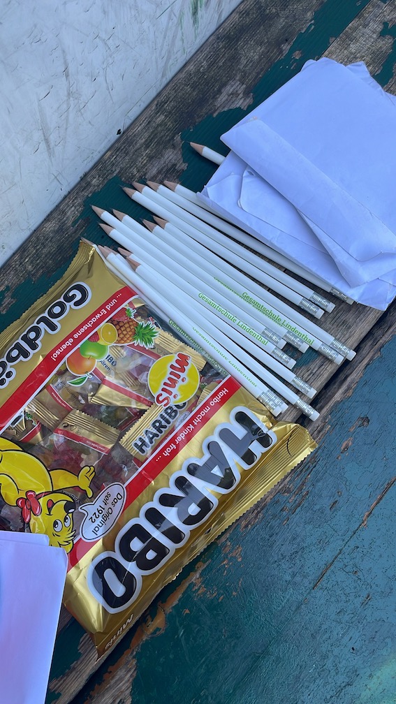 Nach dem Turnier wurde der Schule ein schicker Wimpel überreicht und die japanischen SpielerInnen freuten sich über den GE-Lindenthal Bleistift und die rheinische Köstlichkeit HARIBO :).